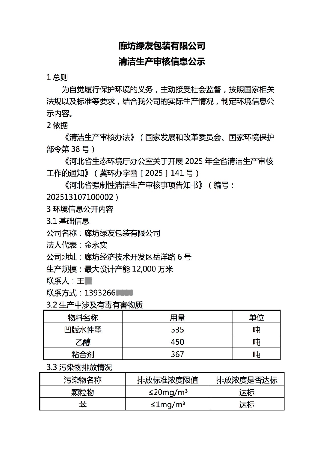 廊坊绿友包装有限公司清洁生产审核信息公示